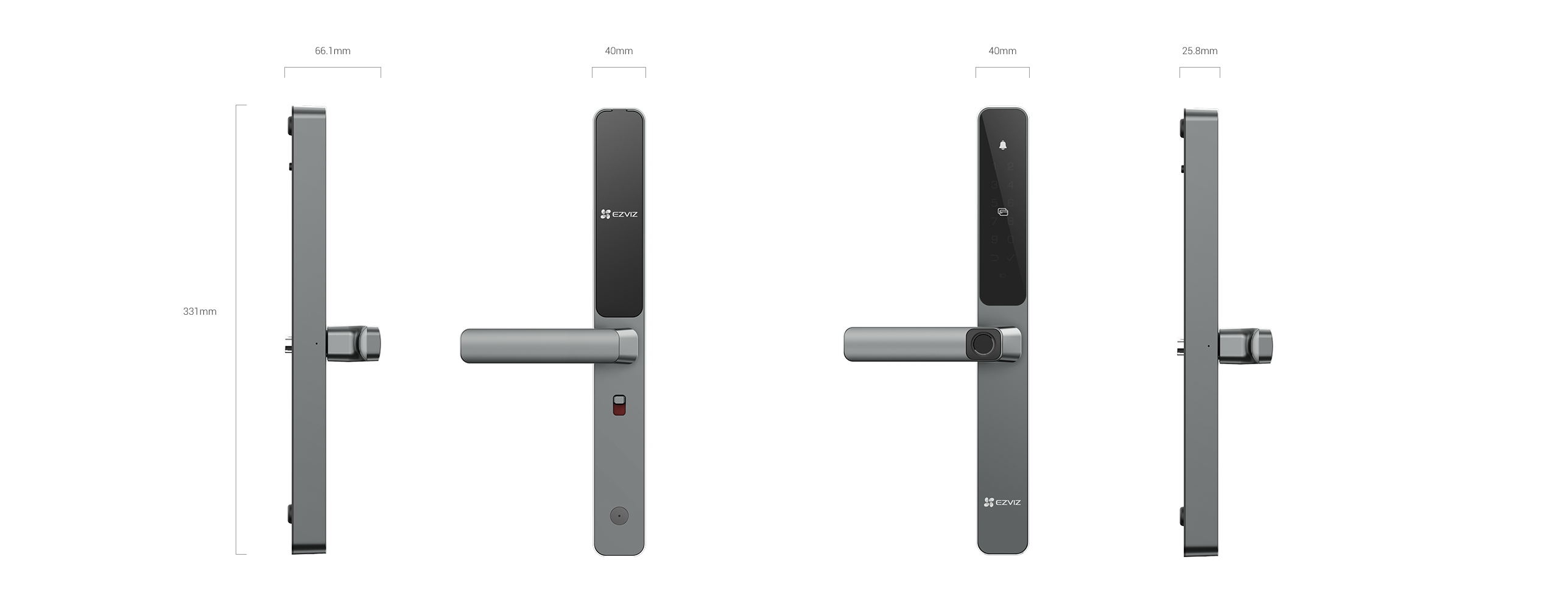 | Phương pháp mở khóa | Vân tay, mật mã, thẻ từ, chìa khóa cơ, Điều khiển từ xa Bluetooth, phím Bluetooth qua EZVIZ Ứng dụng, mã tạm thời, mở khóa từ xa |