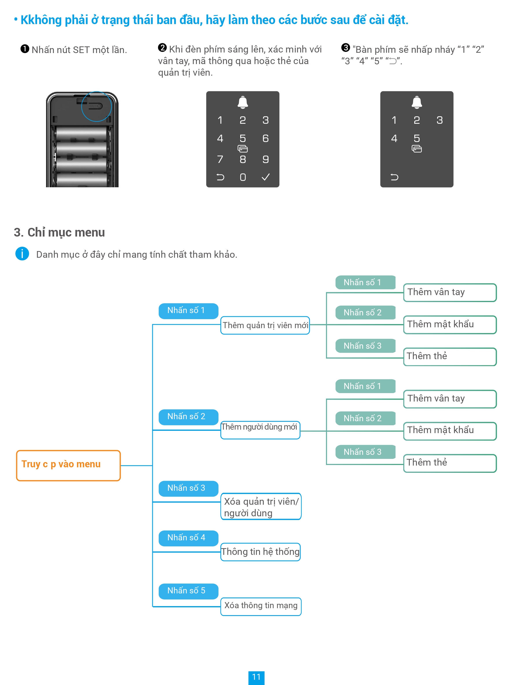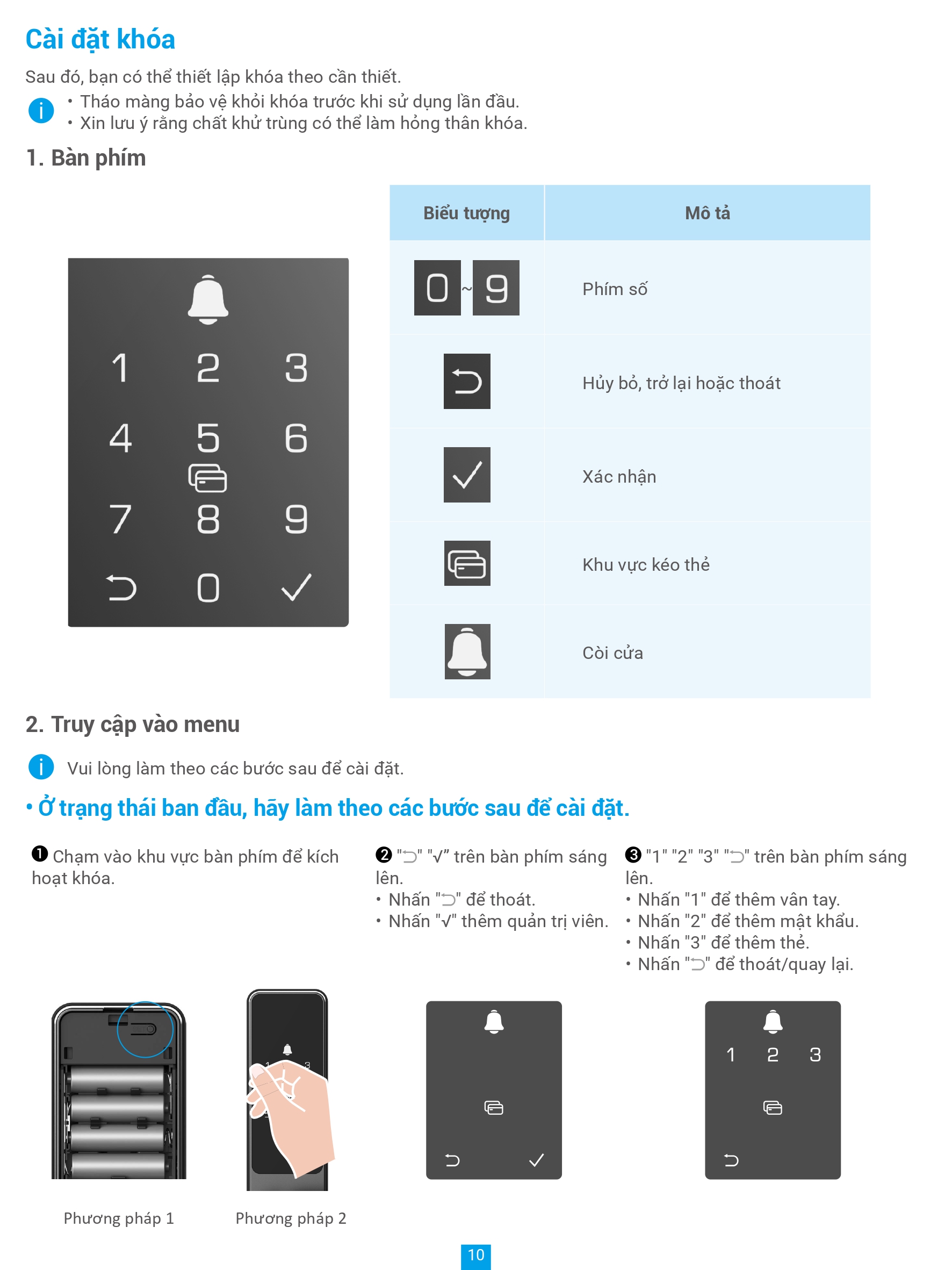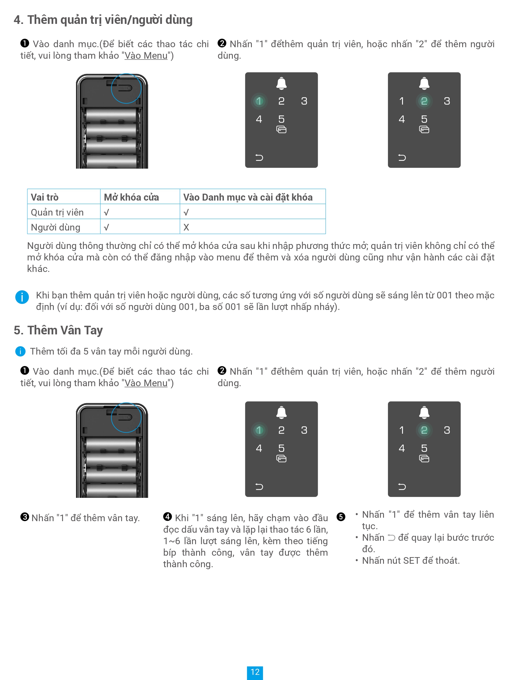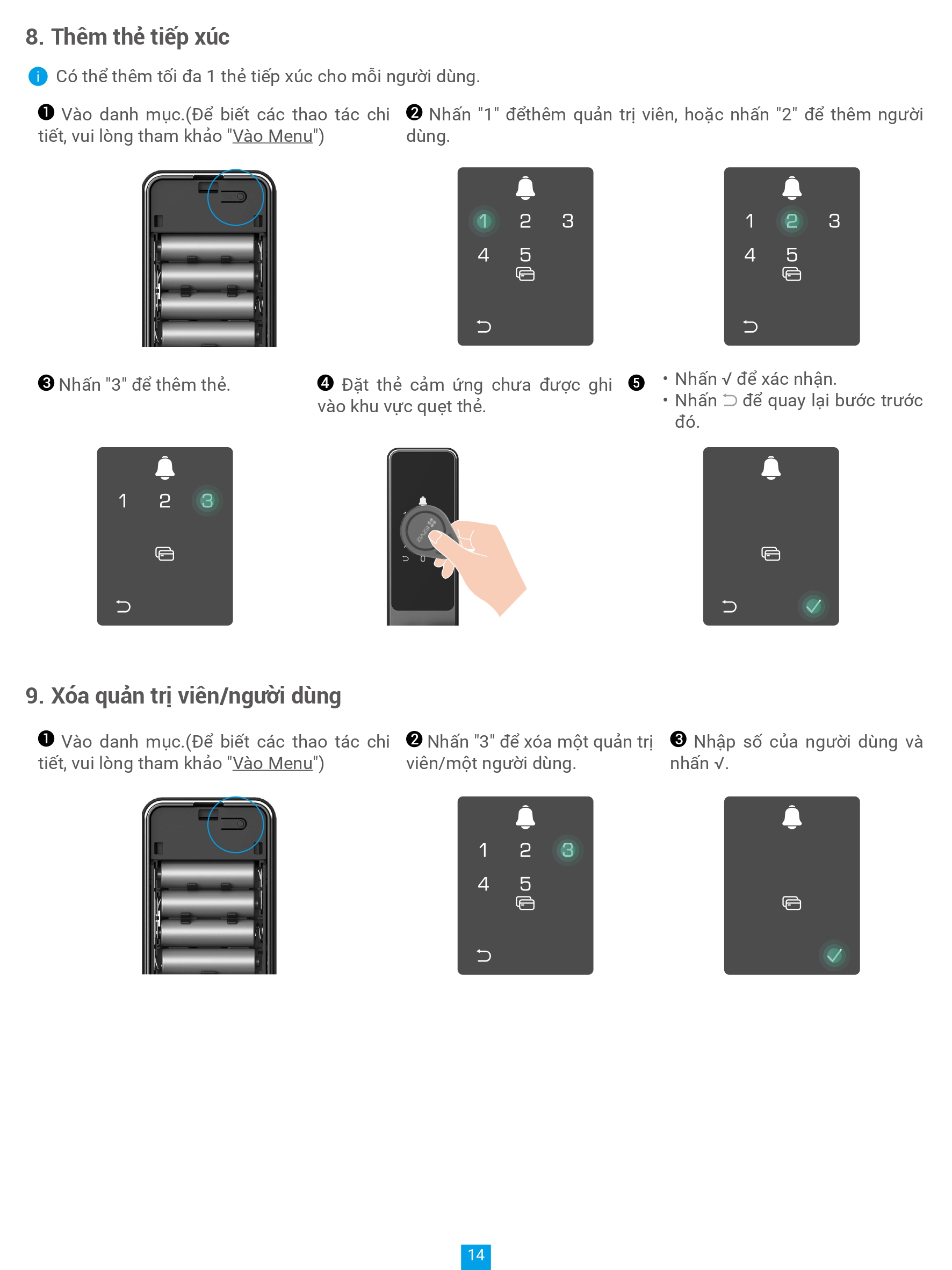 • Số lượng người dùng 50, mật khẩu 50, số thẻ cảm ứng 50