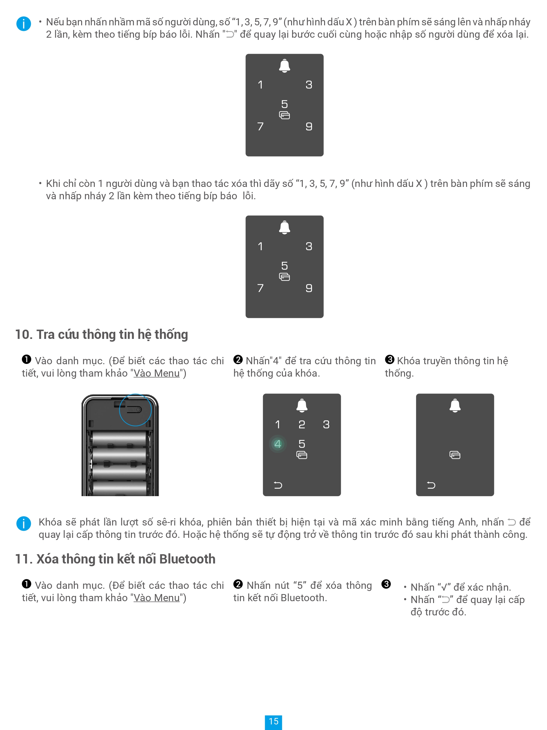 • Thông báo khi pin yếu, thông báo thay thế pin kịp thờ
