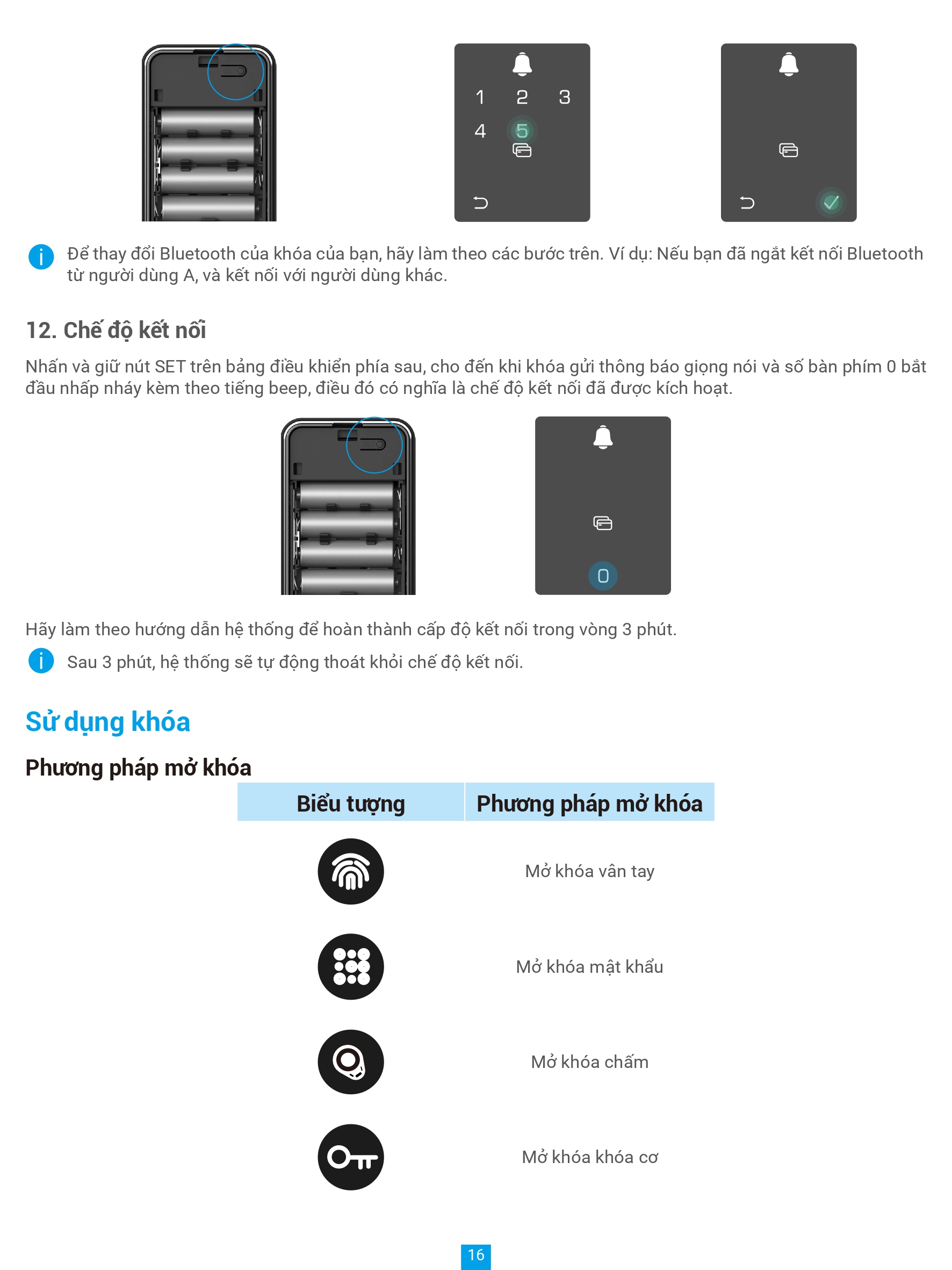 | Loại thân khóa | Thân khóa hoàn toàn tự động |